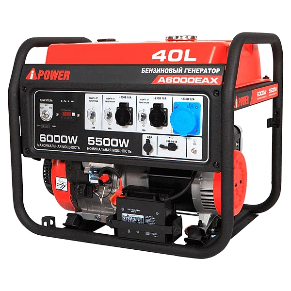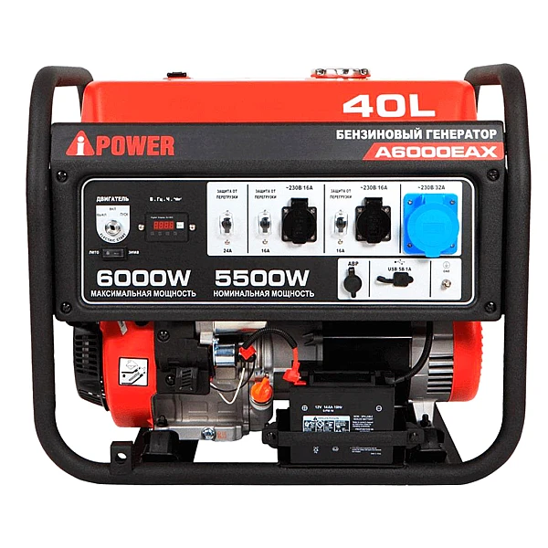 Бензиновый генератор A-iPower A6000EAX - надежный источник питания мощностью 5.5 кВт. Главные преимущества модели - до 11 часов работы на одном баке топлива и возможность подключения приборов с пусковой мощностью до 9.4 кВA, например, высоко производительного ручного инструмента. Поддержка высокоиндуктивной нагрузки - характерная черта всех модификаций с индексом X в названии.