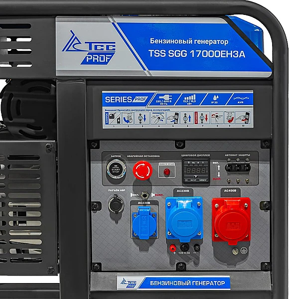 Бензиновый генератор TSS SGG 17000EH3A - одна из самых мощных мобильных трехфазных установок бренда. Эта модель ориентирована исключительно на работу с высоконагруженными потребителями, которые рассчитаны на напряжение питания 380-400 В. Мощности 15.5 кВт будет достаточно для организации бесперебойного энергоснабжения оборудования промышленного класса - станка, подъемника, компрессора или насоса.