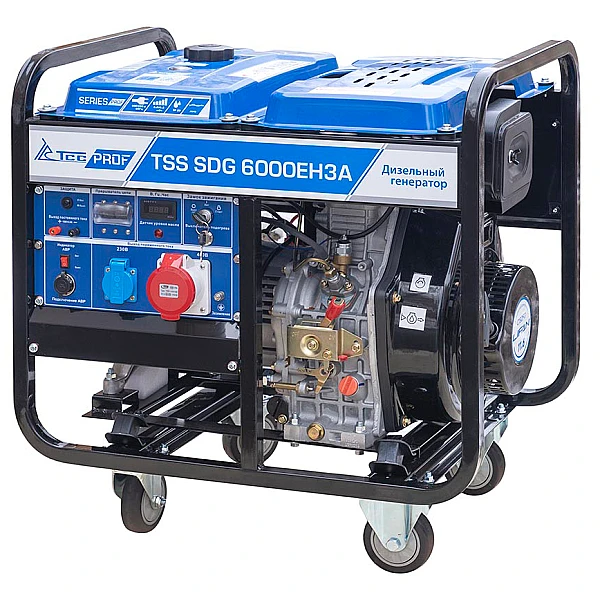 Дизельный генератор TSS SDG 6000EH3A - предназначен для энергообеспечения трехфазных потребителей мощностью до 6 кВт, таких как компрессоры, котлы, насосы, станки, подъемники и др. Высокая надежность, легкость освоение и обслуживания делают эту модель подходящим выбором как для бытового, так и для профессионального применения в мастерской, на стройплощадке или торговой точке.