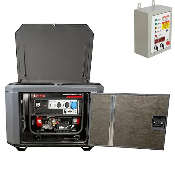 Генератор A-iPower A8000EAX в тихом зимнем кожухе 1200 RAL 7024 + блок автозапуска A-iPower 400 В, 25 А