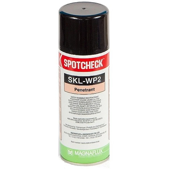 Краска для цветной дефектоскопии (пенетрант) SPOTCHECK SKL-WP используется в широком диапазоне температур и для контроля разных материалов в различных областях промышленности. Основное применение включает в себя контроль отливок, поковок, герметичности, сварных швов и металлоконструкций. Пинетрант SKL-WP также успешно применим на непористой керамике и подобных материалах.