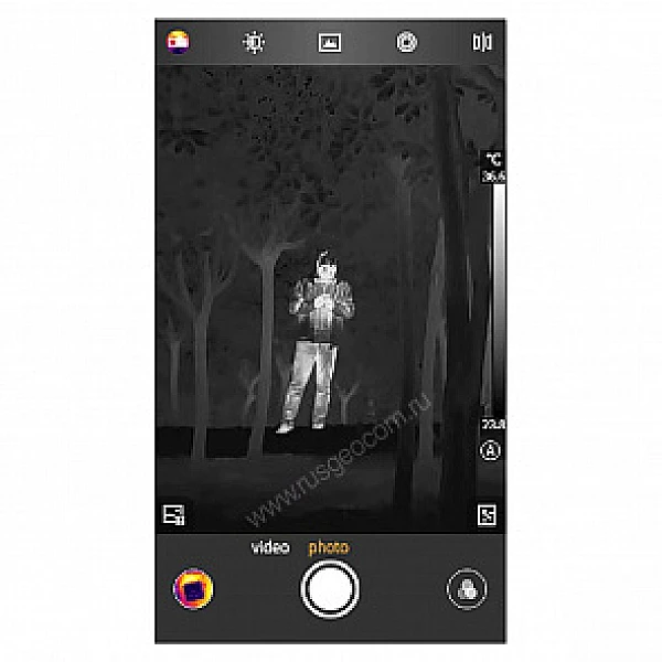 Приложение MobIR поддерживает три режима, которые можно легко и без проблем переключать. Традиционное измерение температуры — Точность измерения температуры промышленного класса ±2°C с широким диапазоном от -20 до + 150°C. Ночное видение — наружное ночное видение с расстоянием распознавания более 100 метров.