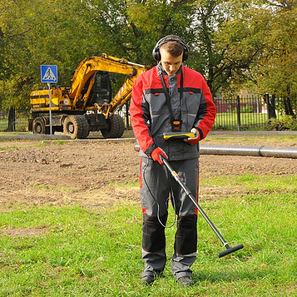 Подключить головные телефоны и ЭМД к приемнику. Использовать режим «ШП», 50 Гц, 100 Гц. Работа в данном режиме позволяет обнаружить силовые кабели под напряжением (режим «ШП», затем 50 Гц), трубопроводы под катодной защитой и трубопроводы с перенаведенным излучением (режим «ШП», 100 Гц).