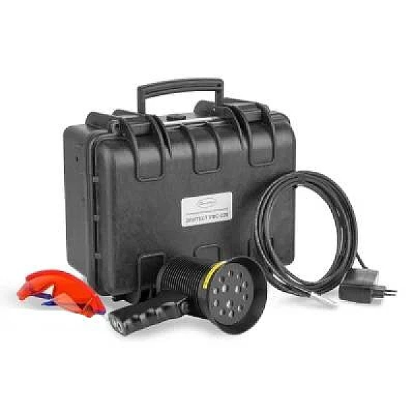 Переносной светодиодный УФ светильник Элитест УФС-220 (УФС-220 BLACK LIGHT) предназначен для качественного выявления дефектов при использовании люминесцентных материалов в капиллярной и магнитопорошковой дефектоскопии. Десять мощных диаметрально расположенных ультрафиолетовых светодиодов с индивидуальными линзами обеспечивают необходимый угол раскрытия светового потока для формирования высокой и равномерной интенсивности УФ излучения на большой области контроля. Три белых светодиода предназначены для осмотра объекта контроля в видимом свете. Встроенный контроллер позволяет с помощью комбинированного многофункционального энкодера регулировать интенсивность ультрафиолетового и видимого освещения, а так же осуществлять простое и функциональное управление алгоритмом работы светильника. При включении светильника и переключении режимов его работы заданная интенсивность излучения достигается практически мгновенно.